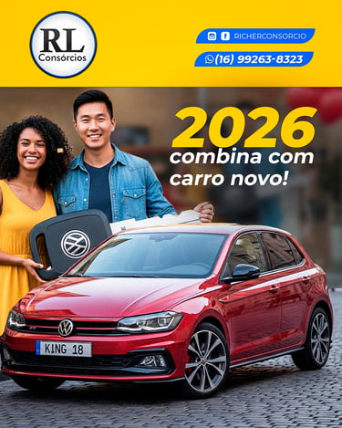 Se você deseja começar 2026 com o pé direito e conquistar um carro novo, o momento de agir é agora. Muitas pessoas esperam demais para tomar decisões importantes e acabam adiando sonhos que poderiam ser realizados com planejamento. Na RL Consórcios, ajudamos você a dar esse passo com segurança. Faça parte de um grupo ainda neste fim de ano! O consórcio é uma das formas mais econômicas de conquistar bens de alto valor, e nossa equipe está preparada para te orientar em todo o processo. Comece hoje o caminho para um novo ano cheio de realizações! Fale com a RL Consórcios e comece a construir um futuro melhor. WhatsApp: (16) 99204-8786